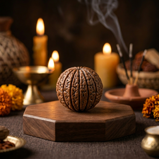 10 Mukhi Rudraksha is known as a bead of divine protection, peace and balance, said to guard against negative energies, Vaastu faults and planetary problems.
